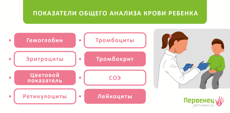 Кровь – это набор форменных элементов и жидкая часть. Форменные элементы отвечают за транспорт кислорода, выполняют защитную роль. Клетки крови – главный предмет исследования при выполнении общего анализа, число лейкоцитов, тромбоцитов, эритроцитов способны многое рассказать о вероятных причинах заболевания малыша.