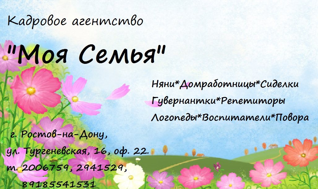Агентство «Моя Семья» начала свою деятельность в 2006 году. За это время нам удалось занять достойное место среди агентств по подбору персонала для дома в Ростове – на – Дону. Процесс становление нашего агентства был не прост, но благодаря кропотливой работе команде профессионалов, имеющих многолетний опыт работы и быстрому освоению эффективного менеджмента в сфере семейного сервиса, мы смогли добиться таких высот. Если вам необходим персонал для дома, который будет профессионалом своего дела, то вы можете смело обращаться в наше агентство. Мы занимаемся подбором нянь, гувернанток, садовников, сиделок, домработниц. Менеджеры, работающие в агентстве «Моя Семья», являются не только специалистами с большим опытом работы, но и просто мамами с большим стажем. Наши менеджеры при подборе и подготовке персонала используют высокий профессионализм, женскую интуицию и своё психолого – педагогическое образование. К достоинствам нашего агентства можно отнести большую базу кандидатов с проверенными рекомендациями и большим опытом работы, предоставление пробных дней для проверки профессионально пригодности предлагающего кандидата, подписание договора на любо срок, экспресс – подбора специалиста, т.е. в течение одного часа. Главной задачей агентства «Моя Семья» является подбор персонала, который сможет гармонично сочетать личные и профессиональные качества.