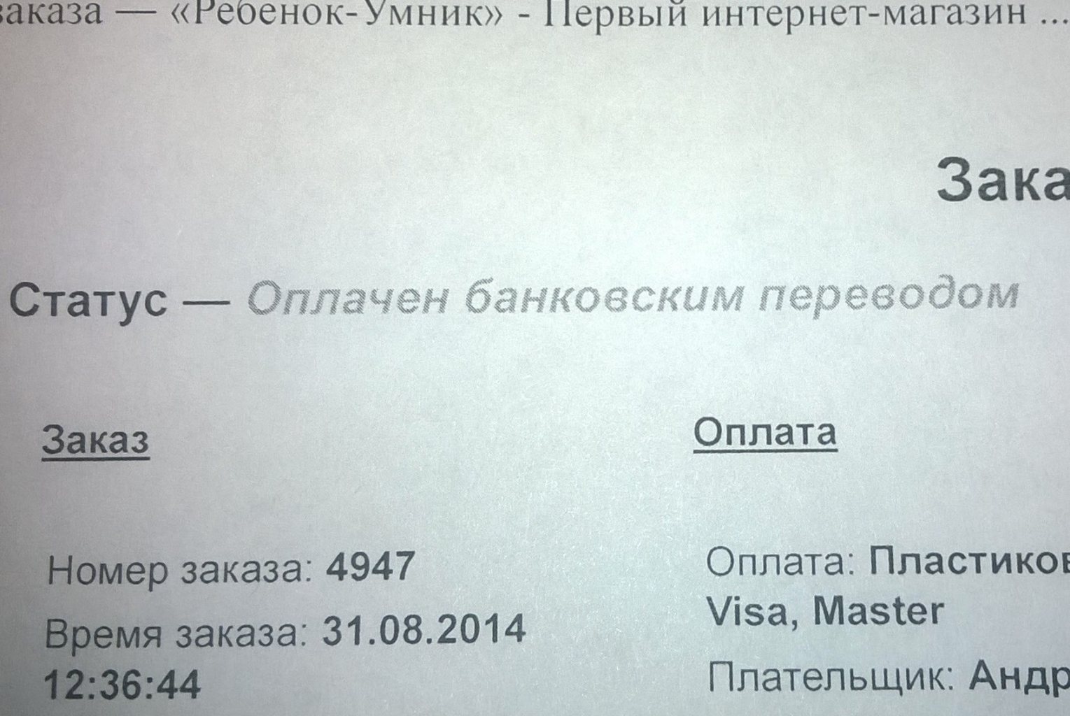 Хочу поделиться печальным опытом покупки в интернет-магазине "Ребенок-умник" который находится в Перми .