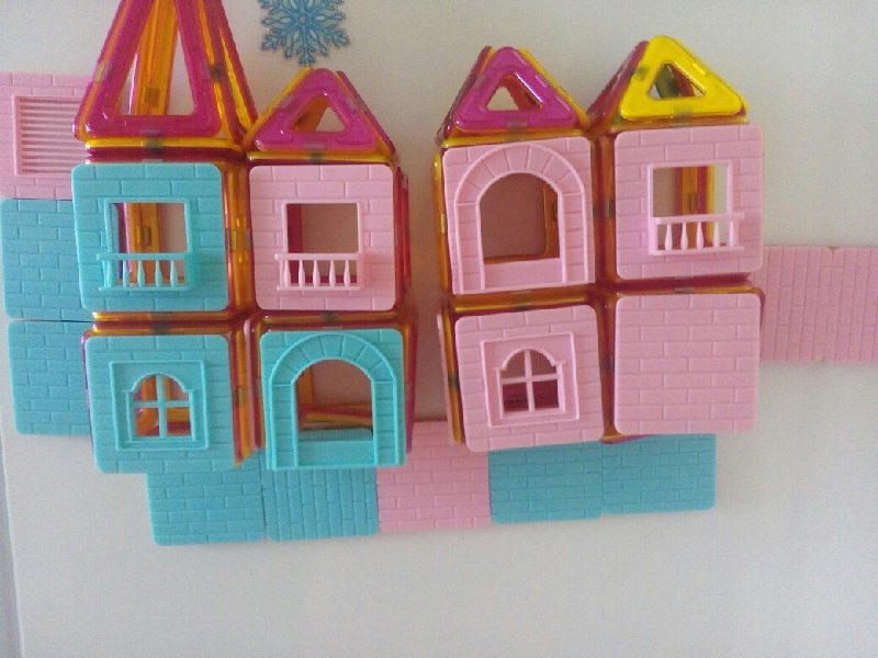 Я очень довольна качеством конструктора– пластик прочный, крепкий и безопасный. Дочка тоже его очень полюбила, играет в него чуть не каждый день. Вот, например, замок держится на холодильнике!!!