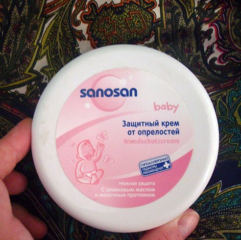 О лечебных свойствах крема от опрелостей Sanosan я узнала еще до рождения моего сына. Будучи в гостях у подруги, пожаловалась ей на сыпь и зуд в области бедер. На неудачный выбор колготок моя кожа отреагировала сильным раздражением. Подруга предложила мне детский крем под подгузник и заверила, что через день-два все пройдет. Удивительно, но так оно и было - уже к вечеру я забыла о зуде, а вскоре исчезла и сыпь.