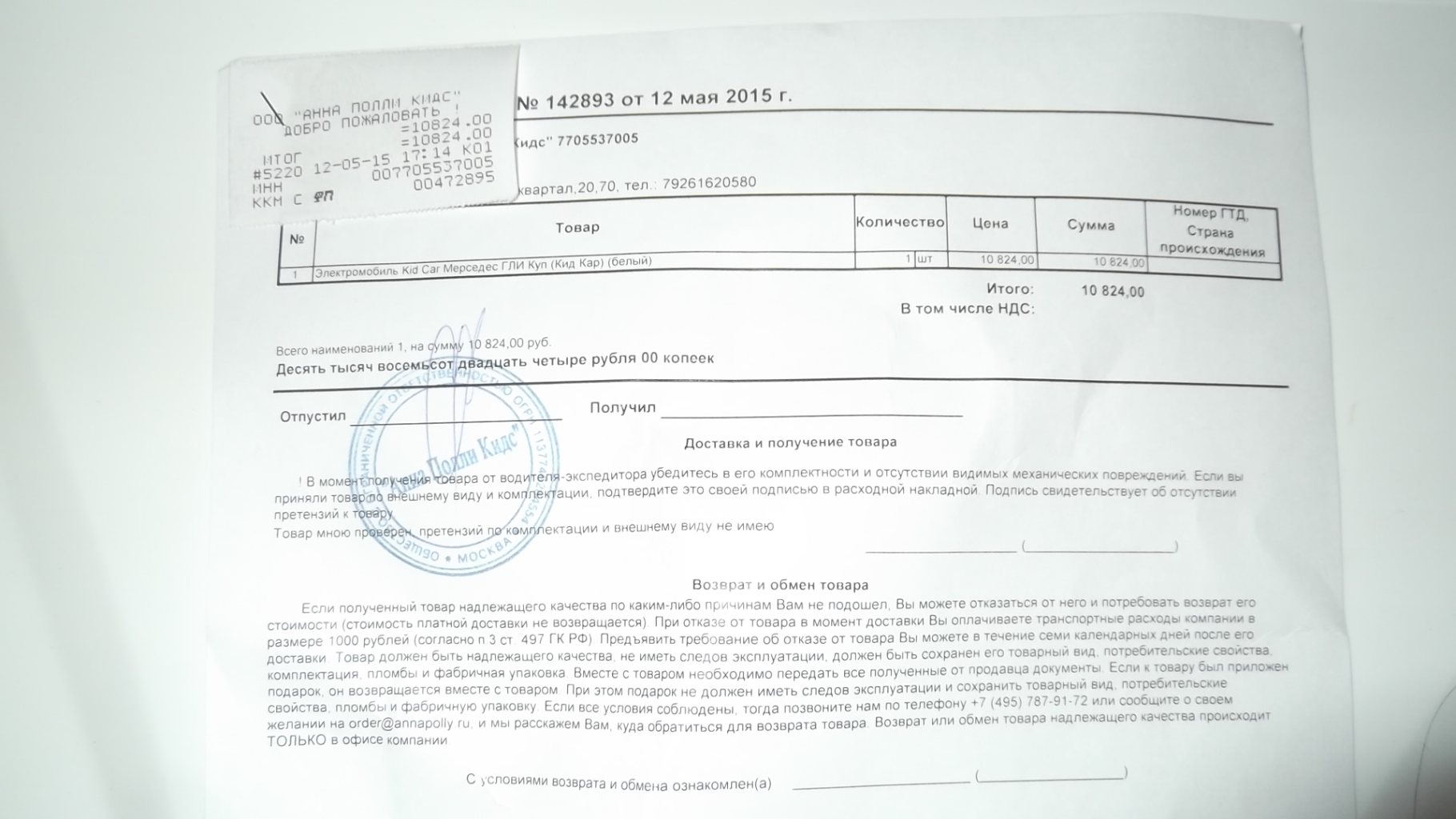 Местоположение пользователя: Россия, Люберцы чек и накладная на эту самую машину