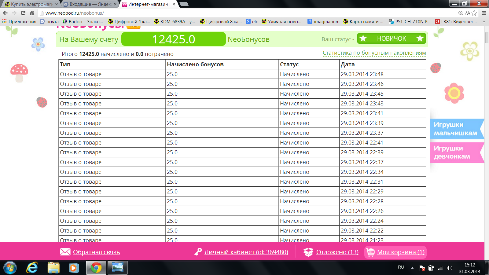 Я сама покупала много игрушек в Неоподе, писала отывы, мне все верно начисляли, бонусы использовала для последующих покупок.