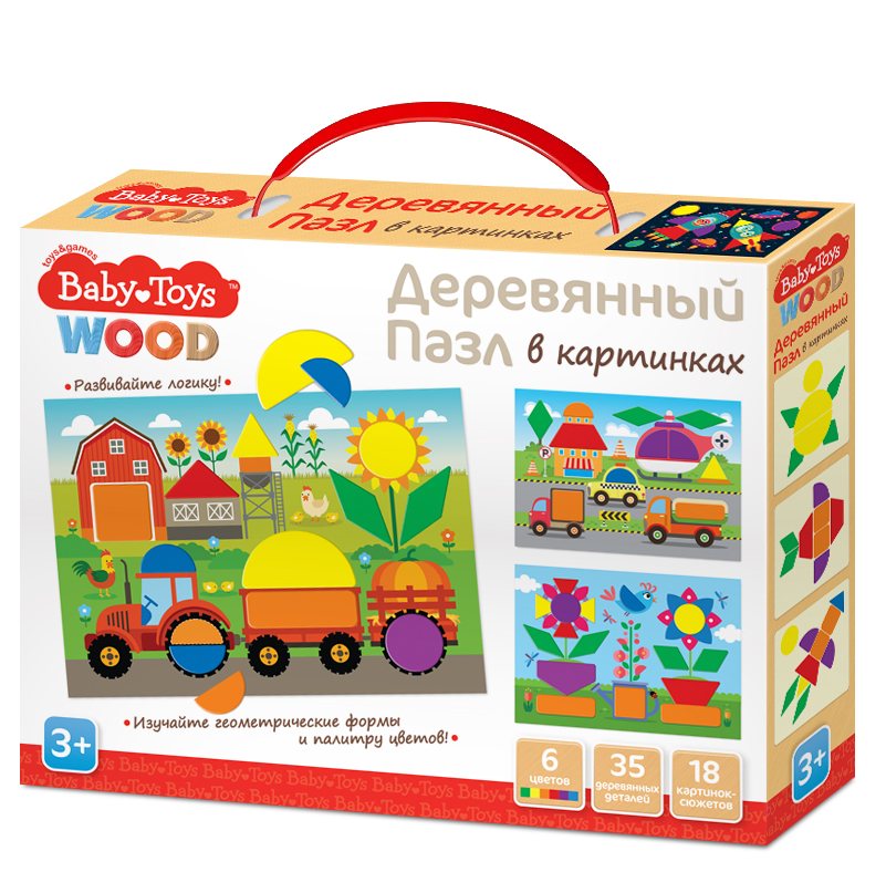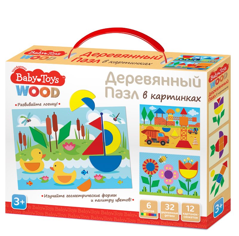 Серия деревянных пазлов Baby Toys WOOD направлена на развитие логики и пространственного мышления, а также на изучение геометрических фигур и основных цветов палитры.
