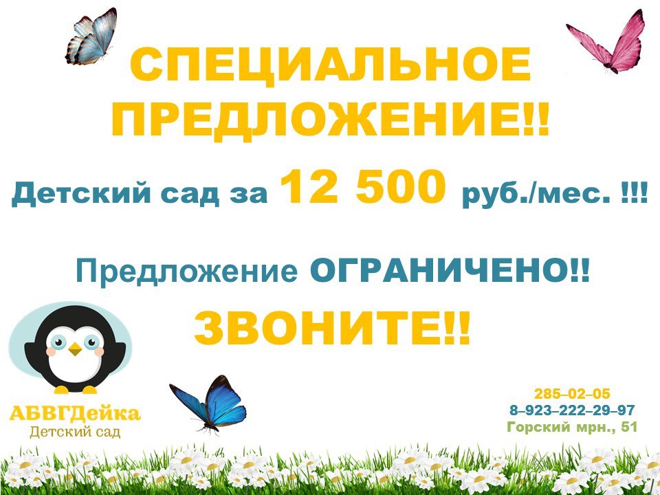Частный детский сад «АБВГДейка» был создан в 2008 году. Недавно нам исполнилось 7 лет! Ваши детки будут в надежных и любящих руках наших воспитателей и преподавателей. А няни обеспечат максимальный уход за вашим ребенком.