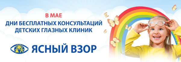 Уважаемые родители! В мае в детских глазных клиниках «Ясный Взор» в Москве и Калининграде проводятся дни бесплатных консультаций.