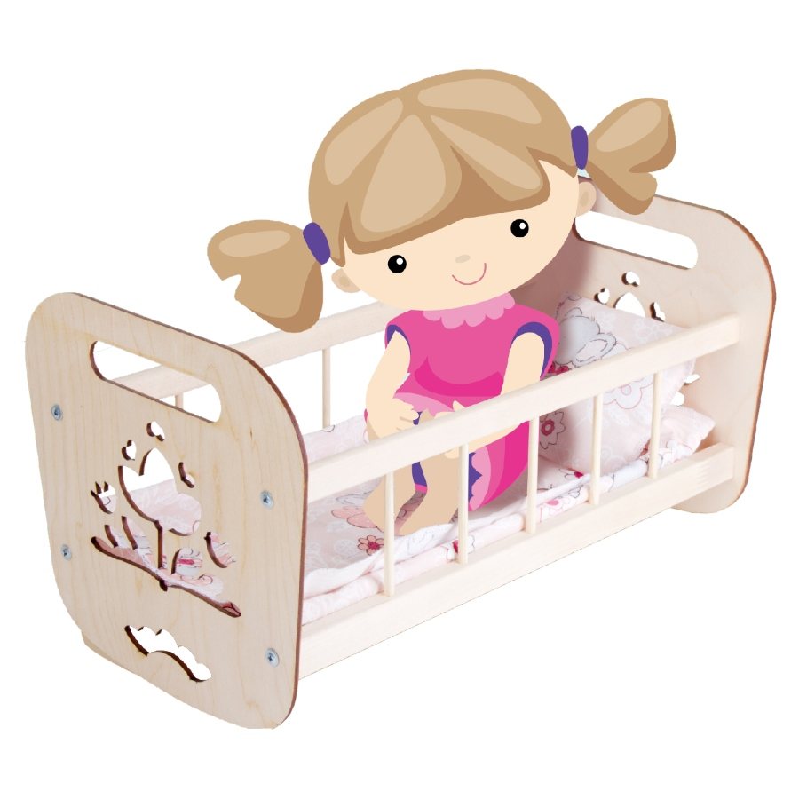 Кроватки продаются в разобранном виде, состоят из 6 отдельных деревянных деталей и легко собираются по принципу 3D-конструктора. Размер кроватки в собранном виде: 44х24х24 см.
