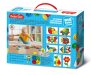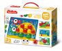 Яркие картинки вставляются в плату, крупные фишки размером 40 мм подбираются и устанавливаются на плату по цвету и форме. В результате ребенок собирает красочную картинку. В процессе игры малыш освоит основные цвета и формы. Игра разовьет координацию движений и мелкую моторику. Мозаика рассчитана на детей начиная с 3 летнего возраста.