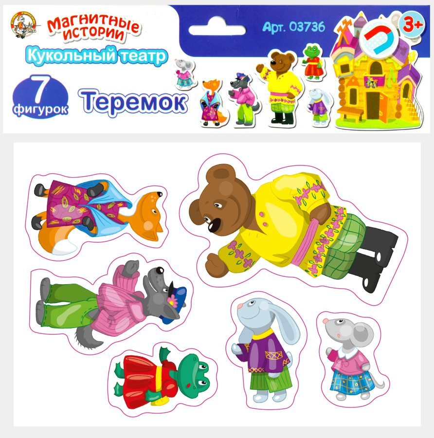 Сюжет любимых сказок предлагается «сыграть» в форме театрального представления. Игра с кукольным магнитным театром развивает у ребёнка любовь к искусству и устному народному творчеству, расширяет словарный запас, тренирует память и мелкую моторику рук.