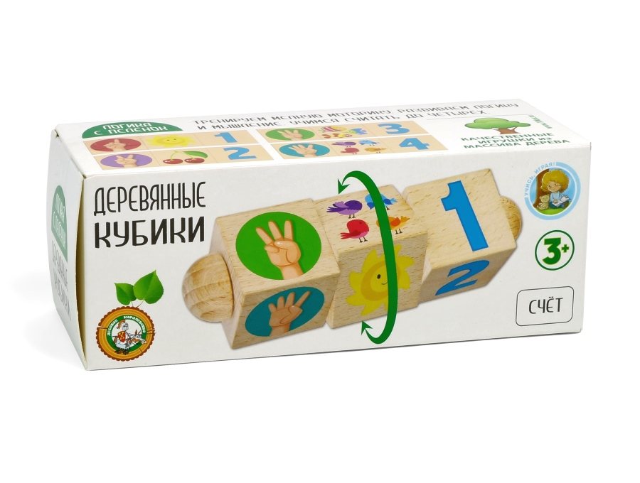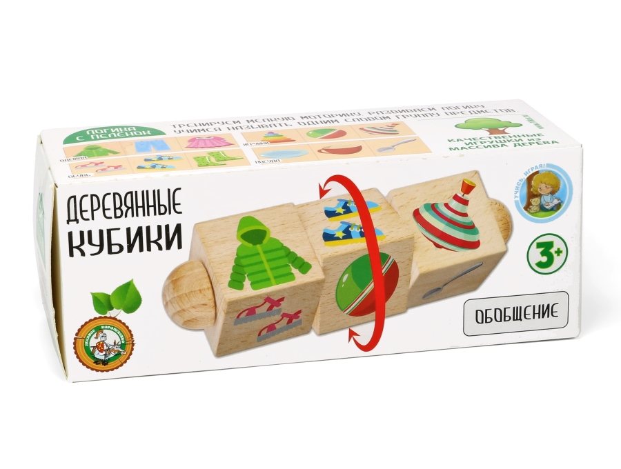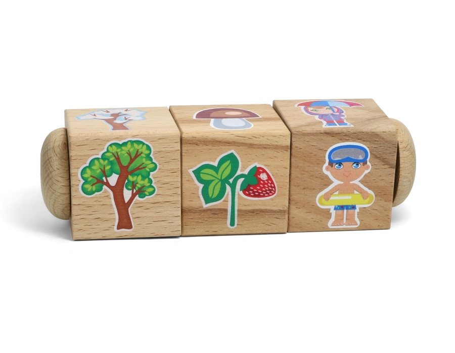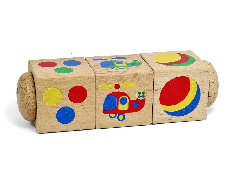 Кубики на оси — модернизированная классика для развития логики. Игрушка состоит из 3-х вращающихся кубиков с картинками на оси.