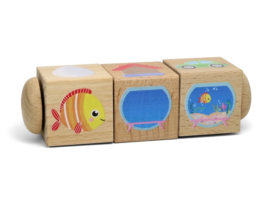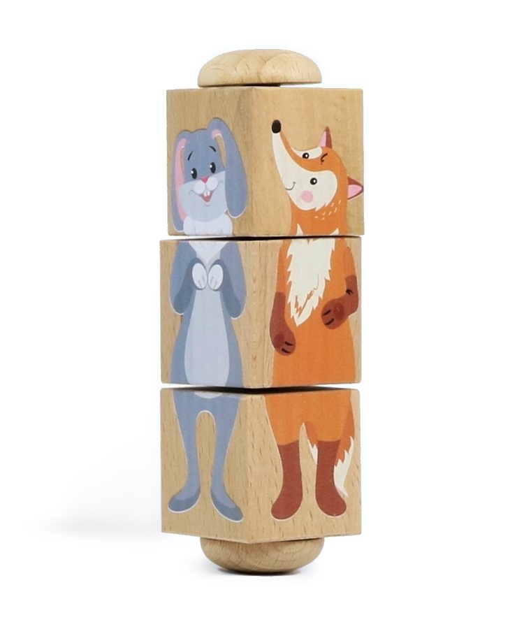 Кубики на оси — модернизированная классика для развития логики. Учат объединять части в целое: собирать картинки животных, классифицировать предметы по временам года, цветам или другим признакам.