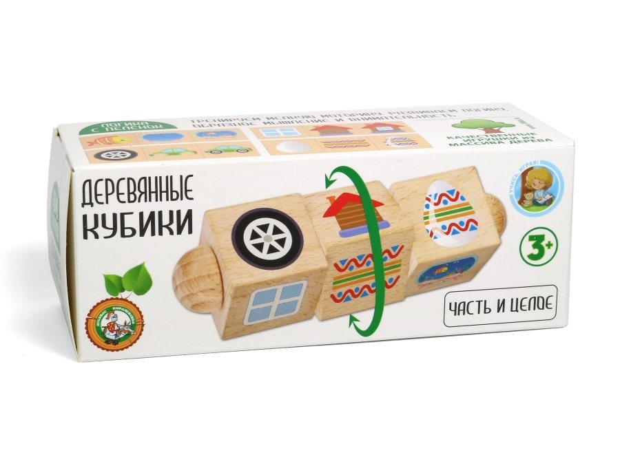 Игрушка изготавливается из массива дерева, изображения печатаются на поверхность кубика, что позволяет дольше сохранить яркость картинки.