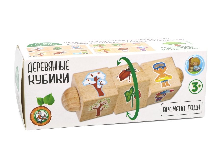 Поворачивая кубики, ребёнок тренирует мелкую моторику рук и развивает логику. Все кубики серии учат объединять части в целое: собирать картинки животных, классифицировать предметы по временам года, цветам или другим признакам.