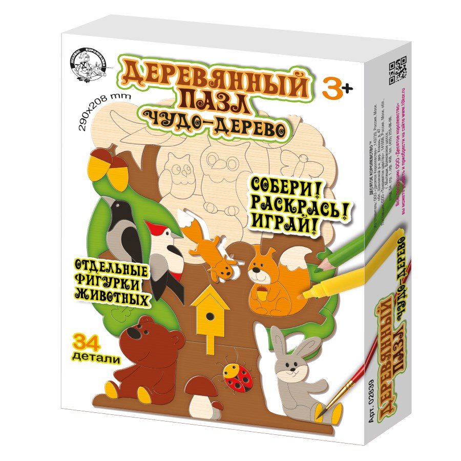 Детали пазлов изготовлены из фанеры и вырезаны путем лазерной резки, рисунок нанесен методом лазерной гравировки. Краски, фломастеры и карандаши для раскрашивания в набор не входят!