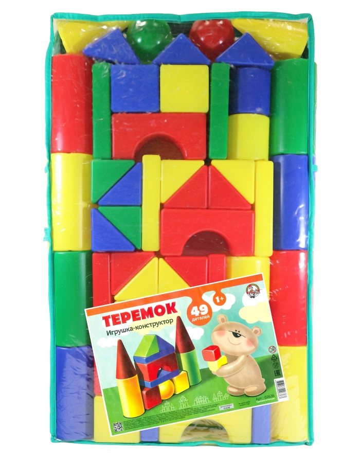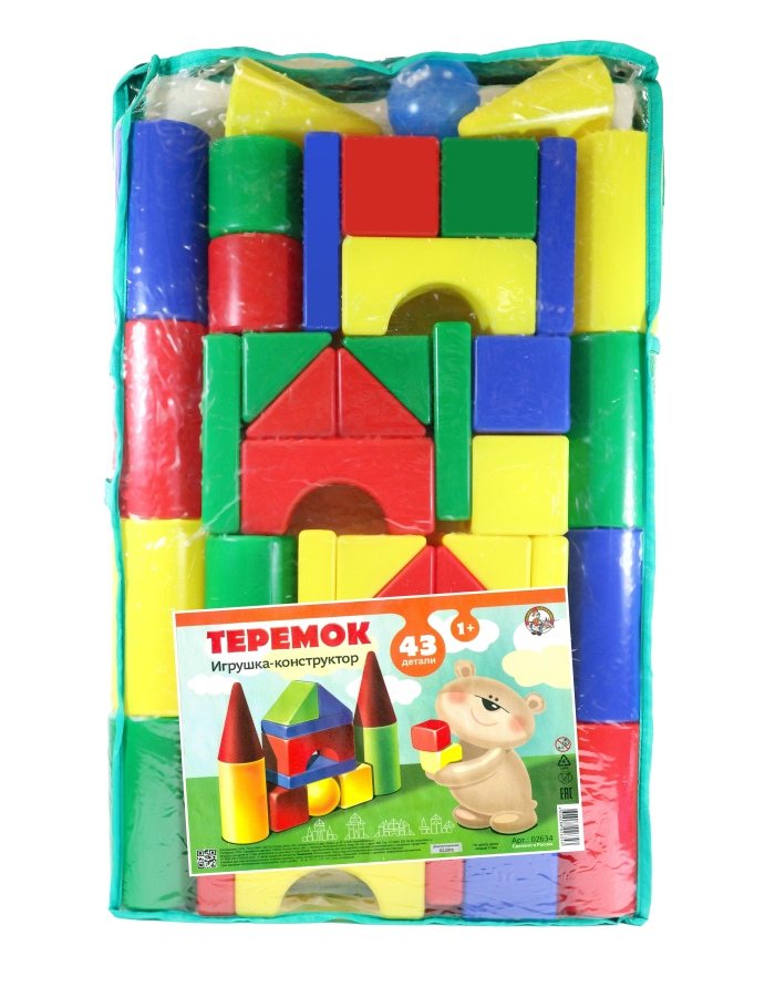 Новые строительные наборы «Теремок» 36 деталей, 43 детали и 49 деталей мы поместили в долговечную и прочную ПВХ сумку с замком, что очень удобно для хранения, транспортировки и поддержания порядка в детской комнате. Сумка не деформируется, не боится температурных перепадов и выполнена из экологически чистых материалов.