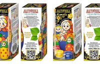 К выпуску деревянных матрешек в «Десятом королевстве» подошли по-своему. Не стали делать готовый сувенир, а предоставили детям от 4 лет и старше попробовать свои силы и навыки в искусстве росписи деревянной игрушки. Для облегчения труда ребенка на каждой матрешке нанесены контурные линии, а три куклы в наборе не отобьют охоту к творчеству даже у тех малышей, которые не всегда отличаются усидчивостью.