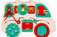Бизиборды нашего производства представляют собой стенды из высококачественной неокрашенной фанеры толщиной 7мм, на которых размещены несколько познавательных элементов: замочки, щеколды, шнуровки, шестеренки и другие предметы.