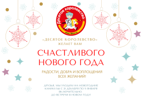 Друзья, мы уходим на новогодние каникулы с 31 декабря по 9 января включительно.