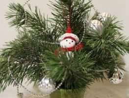 Его можно поставить на полку или преподнести в качестве подарка. Пушистые еловые или сосновые веточки, укутанные серебристыми бусинами и дополненные яркой игрушкой, подарят праздничное настроение и привнесут дух Нового года. Создать такой букет можно вместе со своими детьми. Это чудесный вариант творчества и совместного досуга!