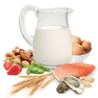 Основным пищевым аллергеном для детей является коровье молоко. Гиперчувствительность встречается у многих малышей, которые реагируют на а-лактоальбумин, казеин, липопротеин, β-лактоглобулин. В этом случае из меню малыша приходится убирать коровье молоко и другие молочные продукты. Некоторые родители пытаются исправить ситуацию с помощью кипячения молока, но этот метод помогает разрушать структуру а-лактальбумина, а на другие составляющие действует плохо. Еще одним сильнейшим аллергеном являются яйца. Многие малыши реагируют на белок яйца разных птиц. Перекрестные аллергические реакции могут быть на белок яиц курицы, гуся, утки, индюшки и пр. Возможна реакция и на желток яйца. Важно отметить, что при аллергии на яйца ребенку могут быть противопоказаны некоторые прививки! Еще одним сильным аллергеном является рыба. Известны даже тяжелые реакции, которые могут развиваться на запах рыбы. Это связано с тем, что подобные аллергены очень устойчивы к кипячению и летучи. Из растительных аллергенов необходимо выделить зерновые продукты. Это может быть даже мука и изделия из неё. Наиболее часто аллергическая реакция возникает на рожь и пшеницу. При такой чувствительности ребенка следует обратить внимание на возможную перекрестную аллергию на пыльцу злаковых трав. Очень сильными аллергенами являются цитрусовые. Они часто вызывают аллергическую реакцию. Одним из не самых безопасных продуктов для малышей является шоколад.