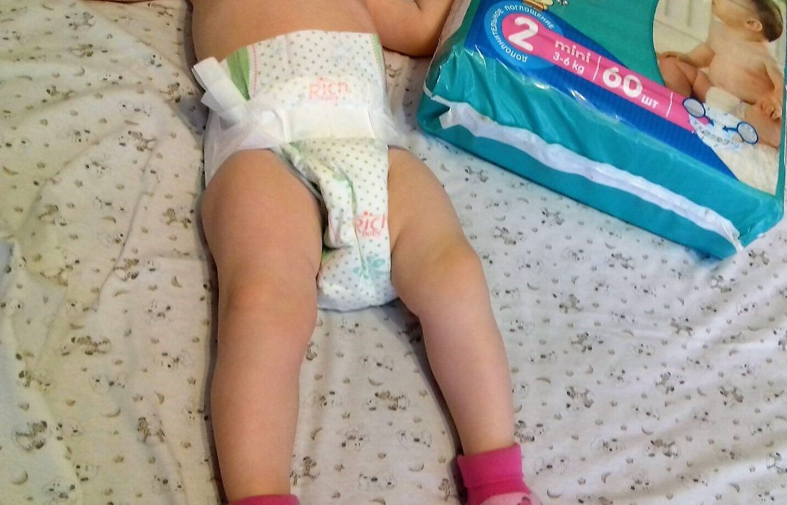 Поехали, начали тестировать. В тот же день покупки я одела Лерочке Рич беби, уж очень хотелось проверить, как они в деле. Бортики высокие, липучки широкие - удобно залеплять. По мне – так хорошо сидят на теле.