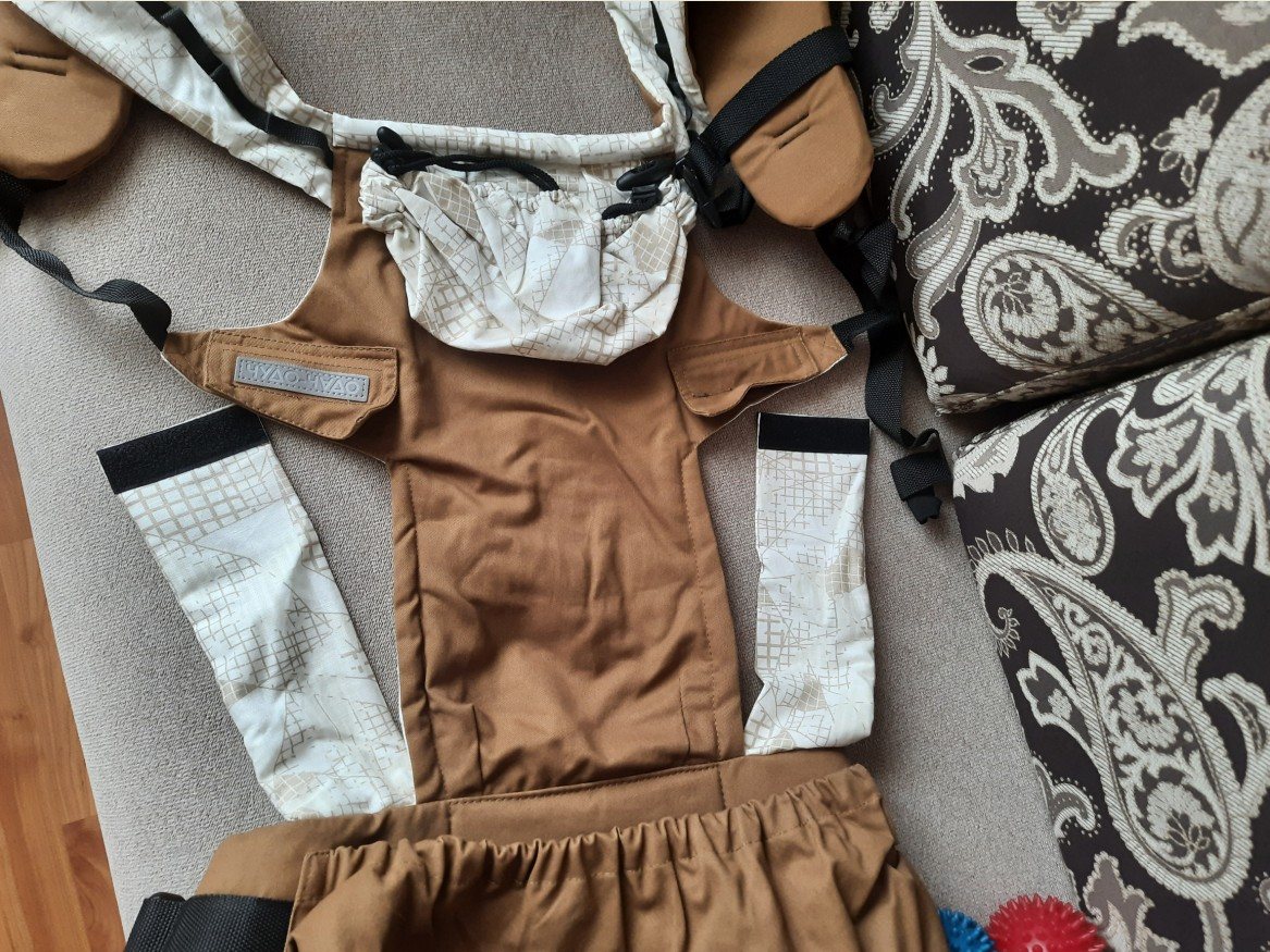 Во-вторых, тяжесть веса ребенка уходит. Вес распределяется на бедра и плечи и меня не клонит вперед и не болит спина.
