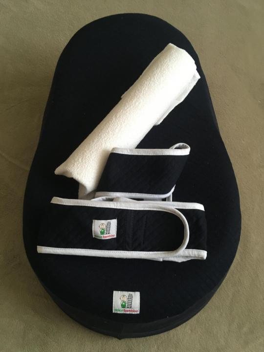 Я купила кокон дольче бамбино сразу с функцией вибромассажа и запасной наволочкой, на Озоне есть такие комплекты. Пока в стирке одна наволочка, ее заменяет другая. Очень приятный материал, кокон удобный, у меня сын спит в нем. Вибро зашло, ставлю как убаюкивающий эффект. Засыпает быстро, валик под ножки есть, голова лежит удобно, выемка под голову есть, плоской не будет. Кокон легкий, переносить можно. На фото у меня стоит на столе. Пояс широкий и липучки крепятся хорошо, самому малышу не отстегнуть. Махра не дает промокать основания. Она непромокаемая. Вообще хороший прибамбас для новорожденных. Я оценила