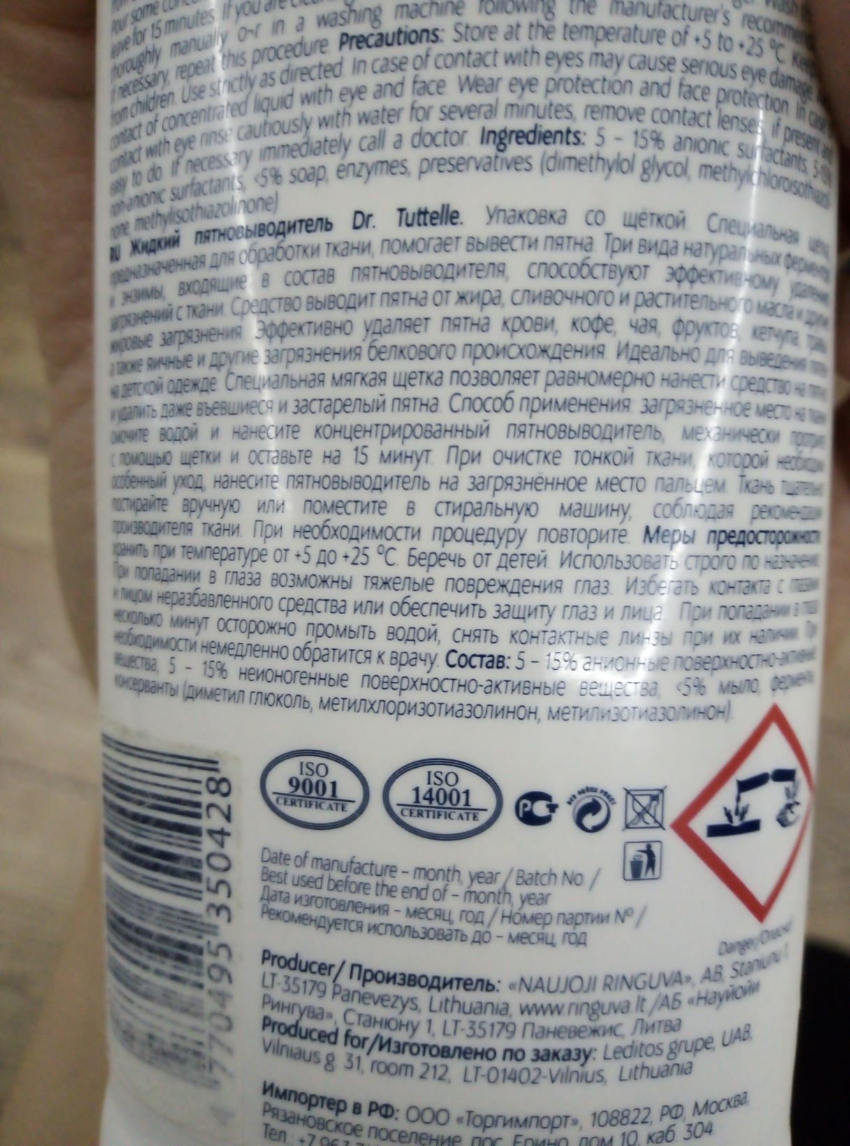 метилизотиазолтнон) – всё это указано производителем на флаконе. От себя могу