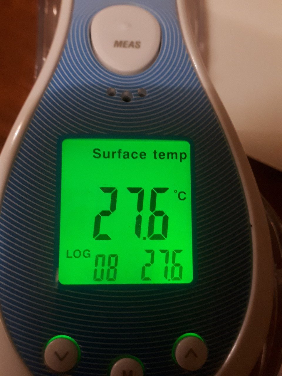 и сравнила показания. В инфракрасном термометре есть еще несколько полезныхфункций. Это световой индикатор, красный экран- высокая температура, зелёный