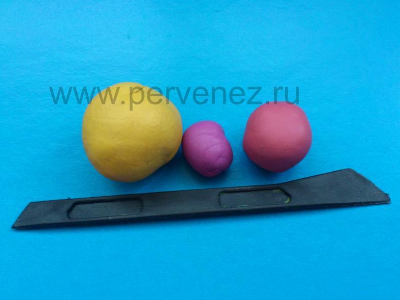 1. Для лепки медузы подойдет абсолютно любой по цвету пластилин, например, розовый и желтый. Во многие наборы производители вкладывают пластмассовую лопаточку треугольной формы, которая позволяет с легкостью делить брусочки и создавать нужный рельеф. Такой инструмент тоже понадобится для работы.