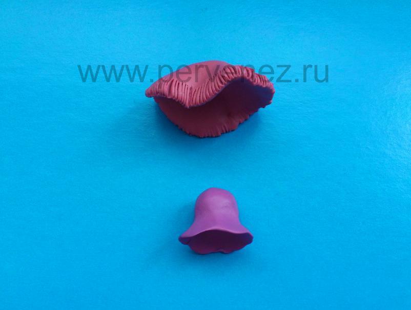 5. Из небольшого количества пластилина сделайте юбочку для медузы. Сначала скатайте цилиндр, а затем вытяните одну сторону пальцами.