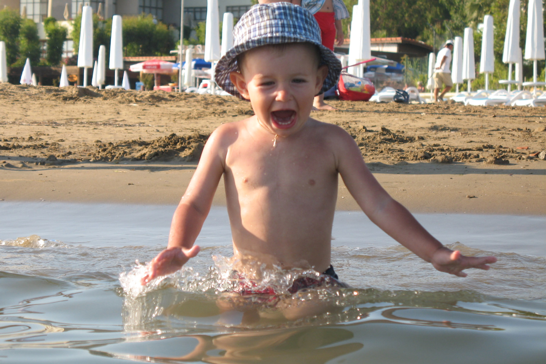 Мы в первый раз отвезли сына на море в Джемете под Анапой, когда ему исполнился год. Ехали на поезде, учились ходить всю дорогу: было весело всему вагону!