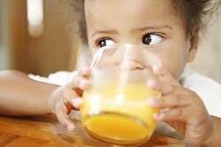 Промойте апельсин, обдайте кипятком. Отчистите апельсин от кожуры, разрежьте на дольки и выньте косточки. Положите апельсин в стерильную марлю и отожмите сок. Можете отжать сок в соковыжималка, порезав фрукт пополам.