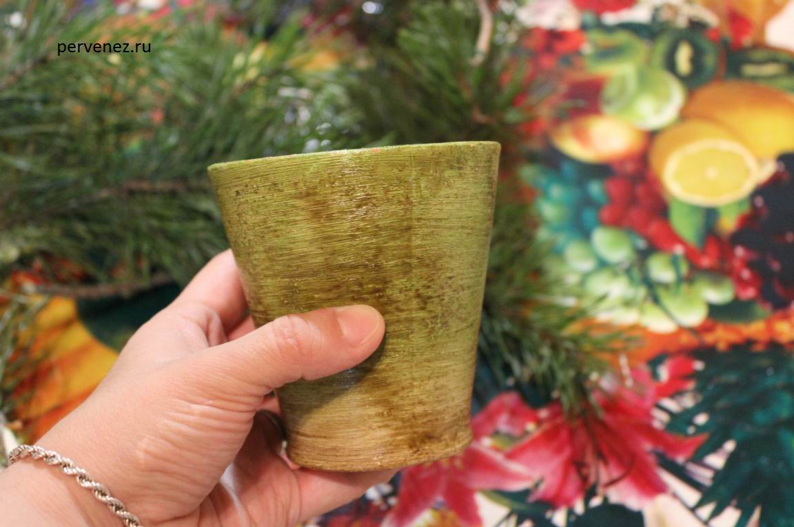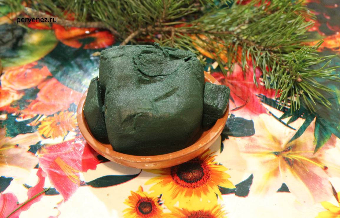 Внутрь горшка плотно набивается флористическая губка. Ее следует подготовить заранее. Для этого сухой материал помещается в кастрюлю или таз с водой. Окунать, быстро погружать губку в воду нельзя: края пропитаются, а сердцевина останется сухой. Нужно просто положить ее на воду и дождаться, пока начинка сама не опустится на дно. Готовая губка достается из емкости: